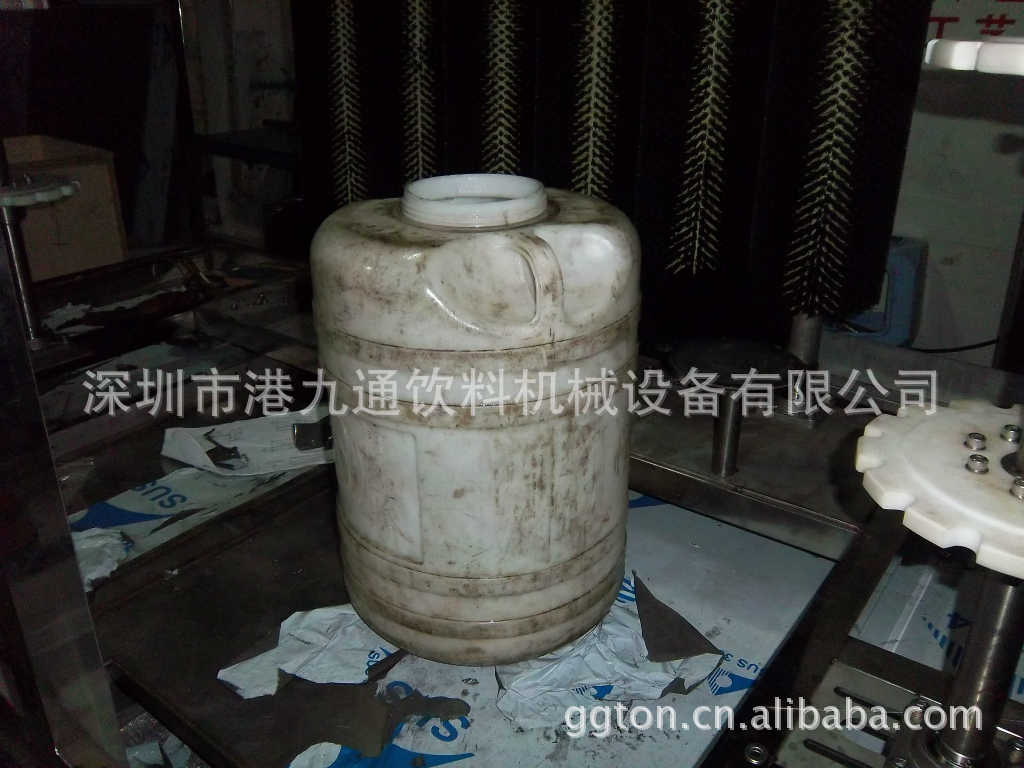 塑膠桶刷桶機- ---塑膠桶,非標(biāo)桶在桶推力下由側(cè)毛刷自動導(dǎo)入外刷洗桶機,外刷洗桶機的仿型毛刷由三部分組成,第一部分由專門設(shè)計的刷形刷洗桶口,將桶口不干凈的灰塵,泥土、污物洗凈,第二部分由桶身形的專用特制刷組成,強力刷洗桶身,將污物去除,不傷桶身,第三部分由桶底特制毛刷組成,不僅可洗平底桶,而且可洗凹底桶,清洗過程中助噴洗滌劑或堿洗液,使污物去除更徹底,在桶的出口處,清水噴淋系統(tǒng)將刷洗洗滌劑沖洗干凈。整機封閉無外泄露,可靠性高,穩(wěn)定性好。配有過載保護,液位控制,水泵采用不銹鋼耐堿水泵。